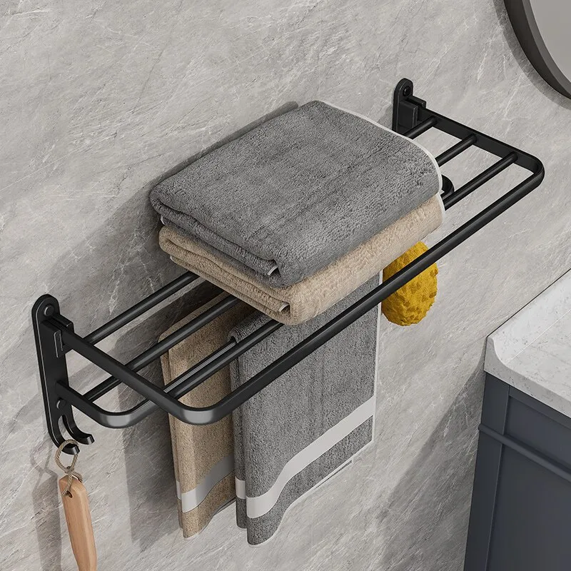 Apresentamos o Suporte Dobrável Preto em Alumínio para Toalhas: Sua Solução de Organização sem Complicações!
